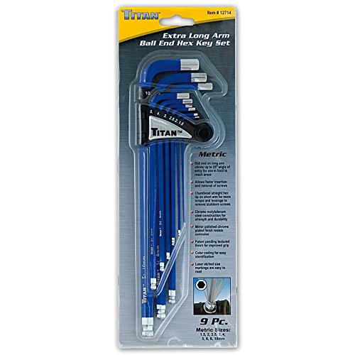 Titan Tools 12714 9-Piece Extra-Long Arm Ball Tip Metric Hex Key Set