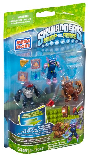 -. Binding : Toy -. Brand : Mega Bloks -. EAN : 0065541954816 -. Feature : Trio of Bash (earth element), Terrafin (earth element) with a pirate hat and saber and Freeze Blade (water element) / Element icons and gold pizza slice / Three buildable baseplates with assorted blocks and vegetation / Compatible with other Mega Bloks Skylanders SWAP Force toys! -. IsAdultProduct : 0 -. Label : Mega Brands America - Megabloks -. Manufacturer : Mega Brands America - Megabloks -. Model : CXM15 -. MPN : 95481U -. PackageQuantity : 1 -. PartNumber : 95481U -. ProductGroup : Toy -. ProductTypeName : TOYS_AND_GAMES -. Publisher : Mega Brands America - Megabloks -. Studio : Mega Brands America - Megabloks -. Title : Mega Bloks Skylanders Champion Figure Pack -. UPC : 065541954816 -. Warranty : Lifetime warranty against manufacturer's defects