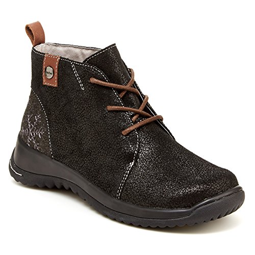 Studio : Jambu Publisher : Jambu Binding : Shoes Product Description A soft feminine take on the chukka boot style, the rosella will easily complement your look throughout the seasons. this water-resistant boot comes in suede and grips the ground with all-terra outsoles. maximum comfort is achieved with memory foam footbed. pair with casual jeans or dress up this look with a skirt. 0