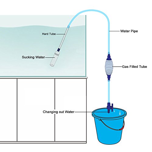 How To Use 1.Dip the water inlet 4-5 inches into the aquarium. 2.And then put the water outlet in to the bucket. 3.Open the water outlet. 4.Use hands press the Gas filled tube lightly,until the water outflow slowly and then stop press.