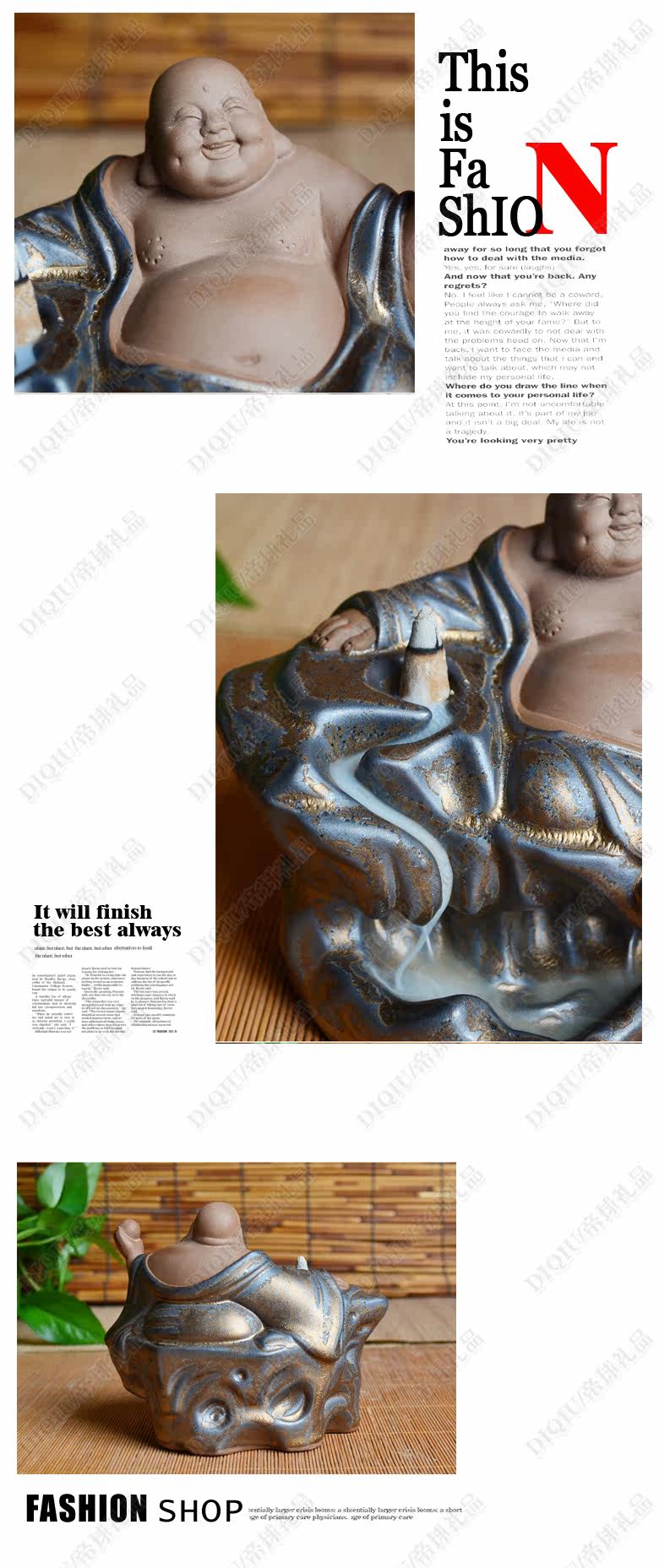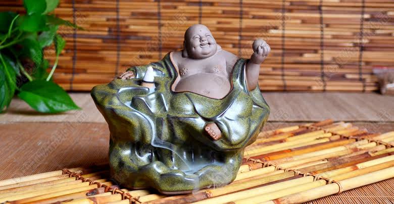 陶瓷时来运转大肚弥勒倒流香炉笑佛平安佛香薰炉家居饰品摆件