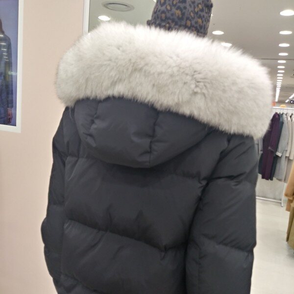 화이트 고급스런 폭스에 블랙 컬러매치가 좋으며 캐주얼하게 입을수 있는 다운 점퍼이고 소매는 시보리처리가 되있어 더욱 따뜻하게 입을수 있어요~~^^