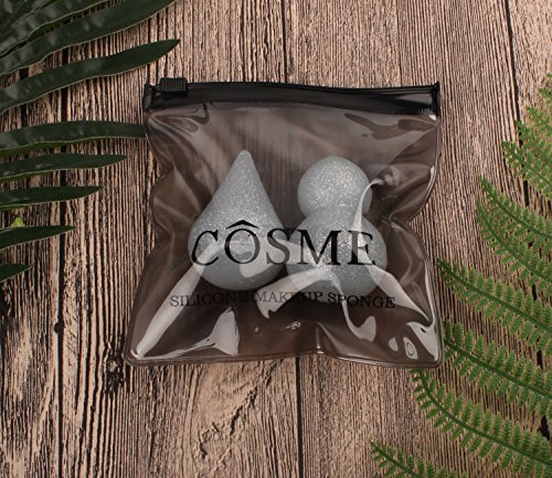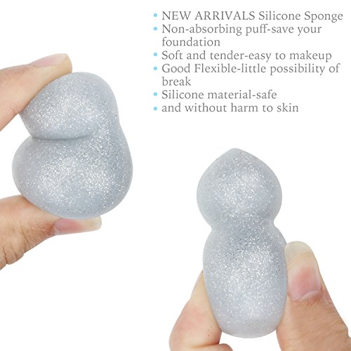 3D Glitter Silicone Makeup Sponges Cute Save Money Washable Foundation Soft Silicone Gel Puff BB / CC Cream Beauty Tools 2Pack Sparkly Silver (Silver,Transparent)