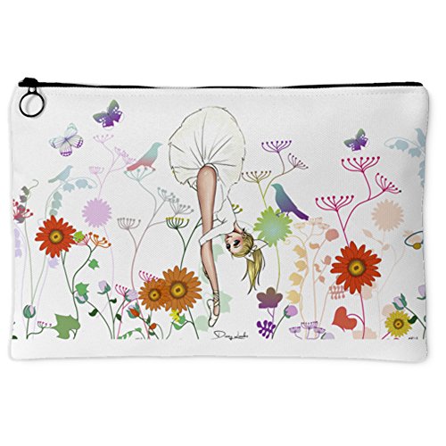 Product Description Featuring a unique Dizzy Looks illustration, this zip-up pouch is a thing of beauty. This is the dancer's choice for storing and carrying all kinds of accessories. It tells everyone who sees it "I Love Dance"- not so much in words, but definitely in the most poetic of ways. Zip up your jewelry, your hair accessories, your smartphone - everything you need to keep handy. This pouch isn't just pretty. Made of hard-wearing canvas, it's also durable. Select your size or buy both. Sizes: Small Pouch = 8 inches x 5 inches; Large Pouch = 12 inches x 8 inches 0
