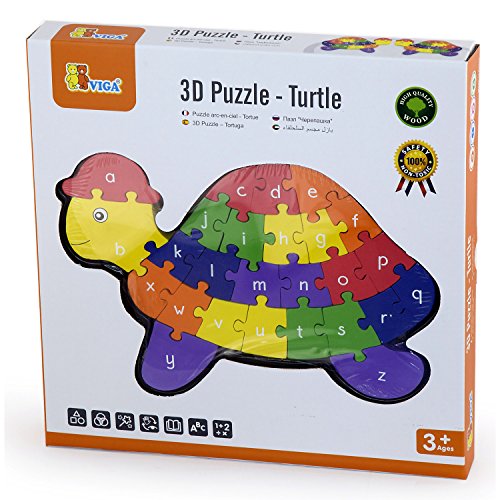VIGA Viga - 2-in-1 3D-Alphabet- & Zahlenpuzzle in Schildkrotenform - Holz