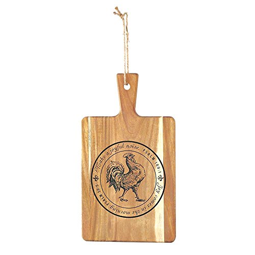 Make a Joyful Noise Rooster Black Stamp 7 x 12.5 Acacia Wood Paddle Cutting Board and Hanger