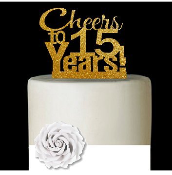 CakeSupplyShop Item#015CTA - 15th Birthday / Anniversary Cheers Super Gold Glitter Sparkle Elegant Cake Decoration Topper