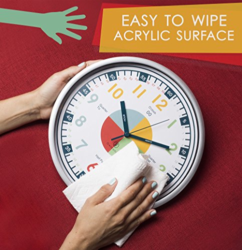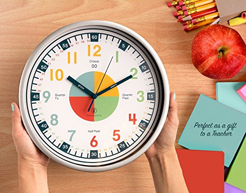 -. Title : Teaching Clock with Silent Movement | Educational Clock that Makes Kid’s Learning Time Faster + Fun. Quiet Child’s Wall Clock Perfect for Parents and Teachers, Toddler’s Bedroom or Classroom.