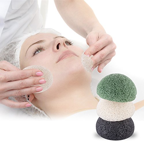 Konjac Facial Puff Sponge-Natural Original Pure Cleansing Sponge Bath Body Soft Puff Face Washing for All Skin Type (Black-1 Pack)