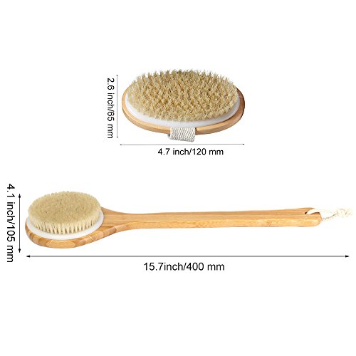 - The total length of the long handle back brush is 15.7 inch (400 mm) while the handle is 11.8 inch (300 mm), and you can hold the small oval brush in one hand. Meet the ergonomics design and easy to grip.