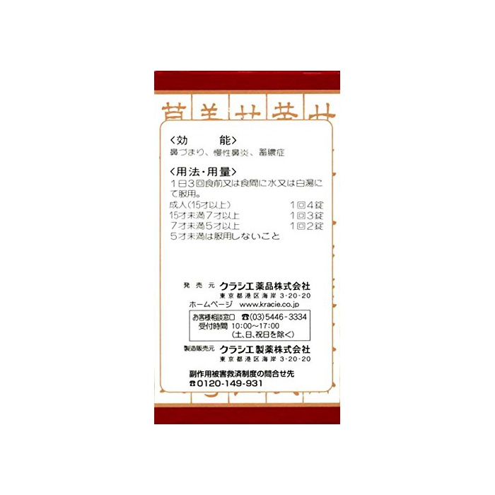 원본상품명: 【第2類??品】「クラシエ」漢方葛根湯加川キュウ辛夷エキス錠 180錠