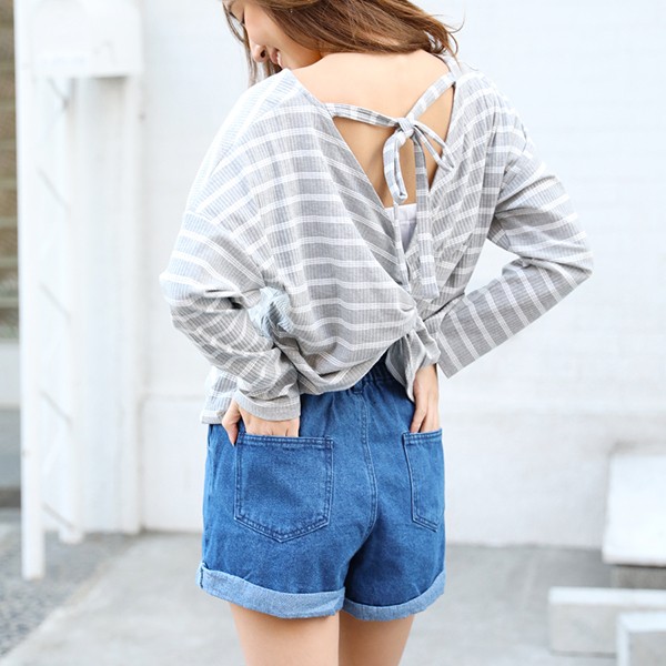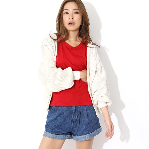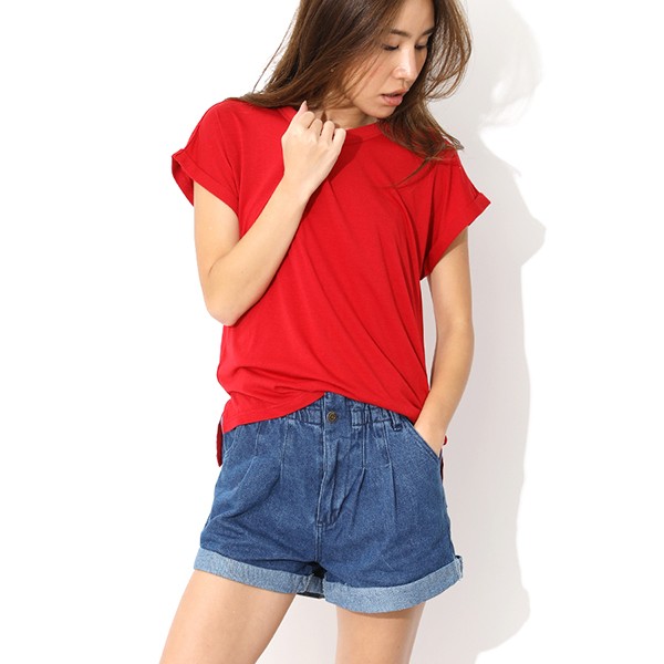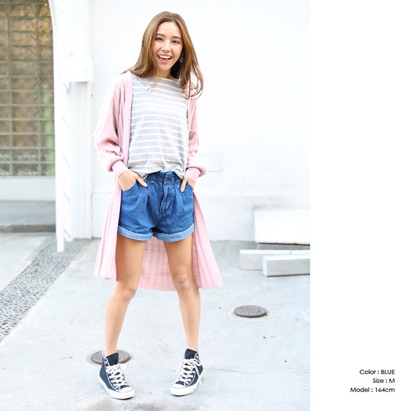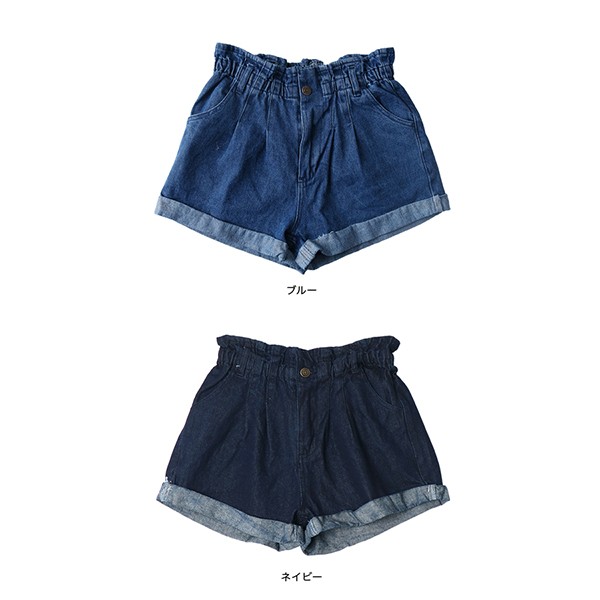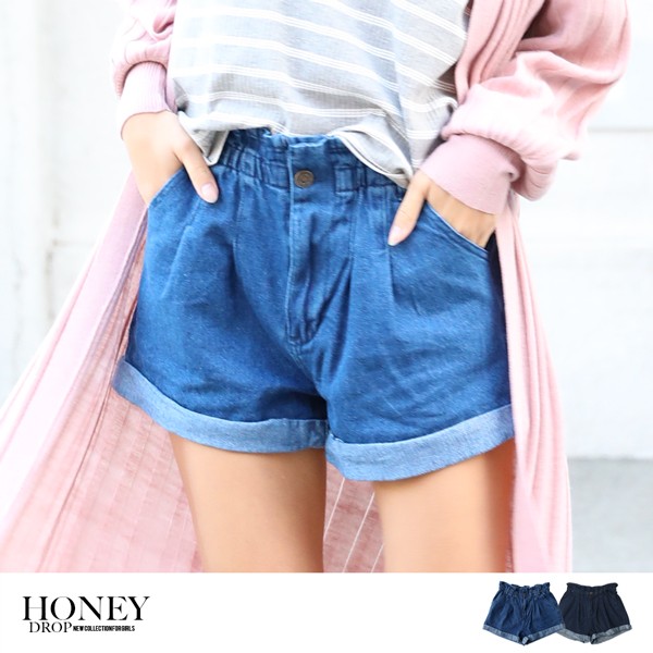 ロールアップが可愛い、デニムショートパンツ。