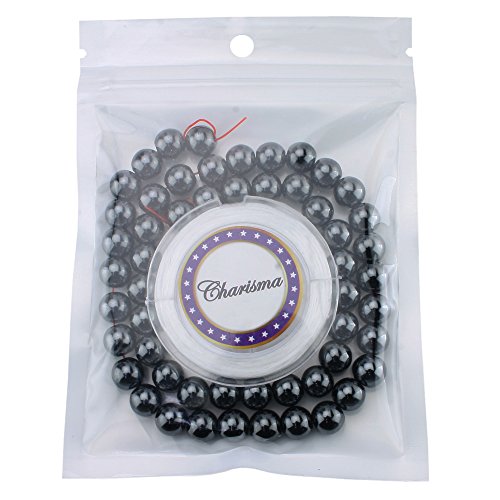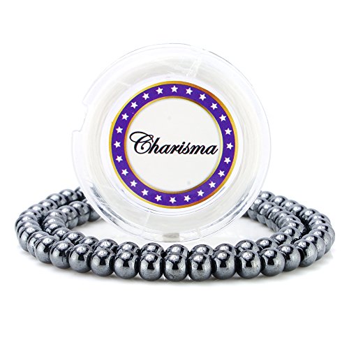 Charisma 6mm Hematite Gemstone Round Loose Beads with 10 Meters Crystal Stretch String Cord for Jewelry Making (63~65PCS)
