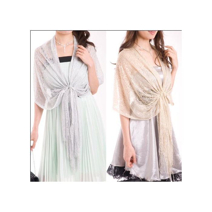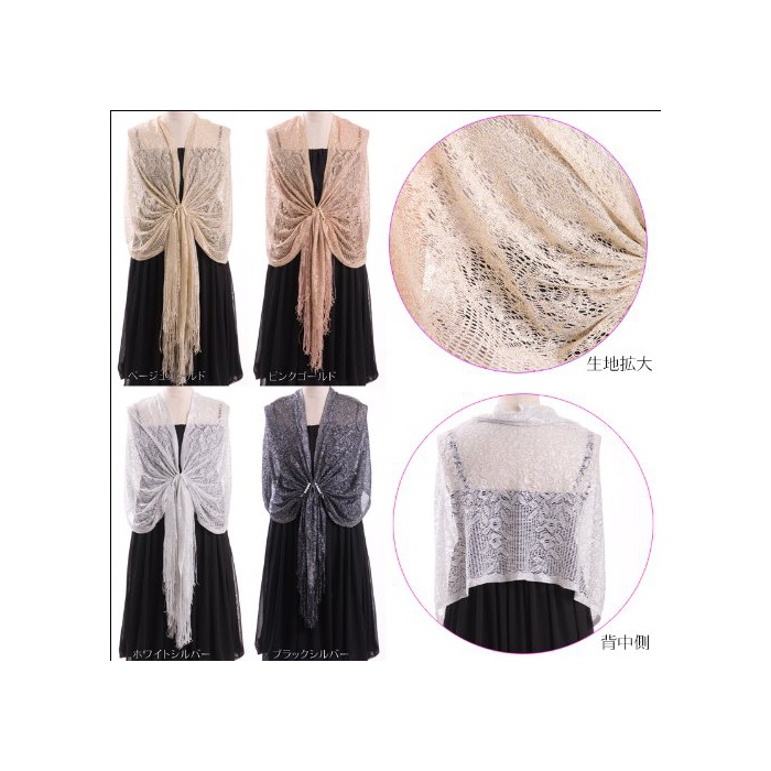 《아우로라》 일본제 펄 라메 숄 플라워무늬 베이지 골드 결혼식 파티 포멀