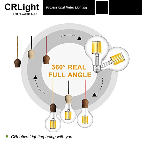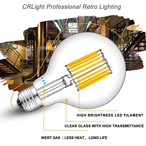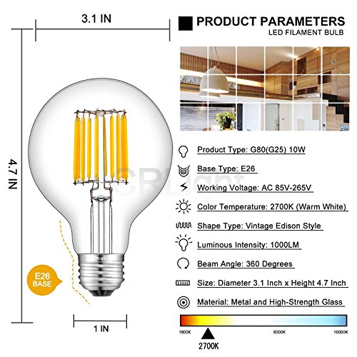 CRLight 10W LED Filament Globe Light Bulb, 2700K Warm White 1000LM, 100W Incandescent Replacement, E26 Medium Base G80 Globular Shape, 360 Degrees Beam Angle, Non-dimmable, 2 Pack
