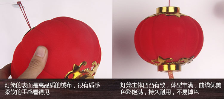买前必读:因植绒灯笼的内胆是塑料的,运输过程难免会有个别压陷或者破皮等