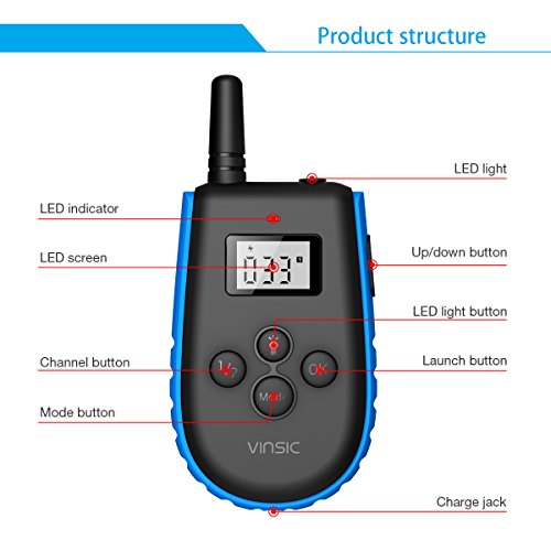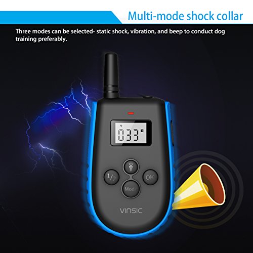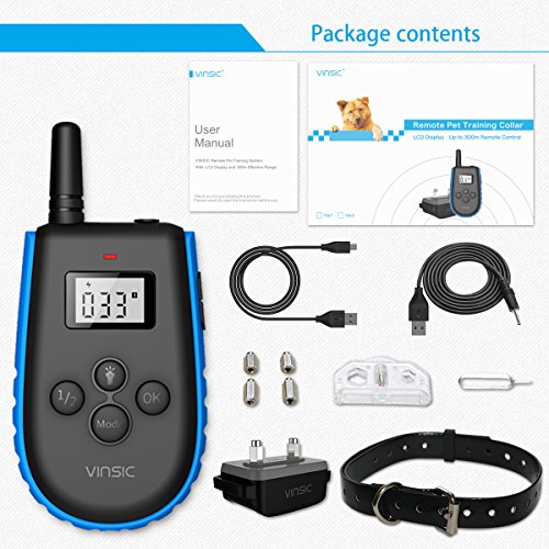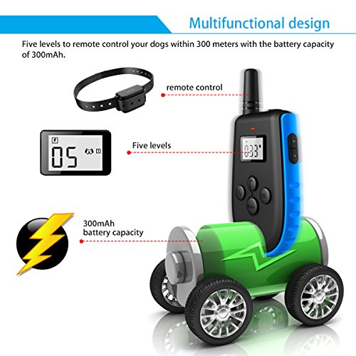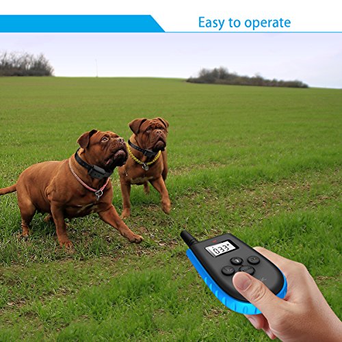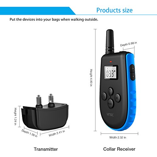 Shock Collar for Dogs Rechargeable and Waterproof dog training collar The dog shock collar with remote consists of a receiver, a transmitter and a collar. The device is rechargeable and waterproof, then the battery has a long-lasting life. It's safe and adjustable, so you could cut out the collar in accordance with the size of you dog. On a sunny day, take your beloved dog to play on the green lawn drawing near the pretty lake, you just enjoy the owesome sunshine and sit on a couch taking the product in hands and feel the pleasant time.