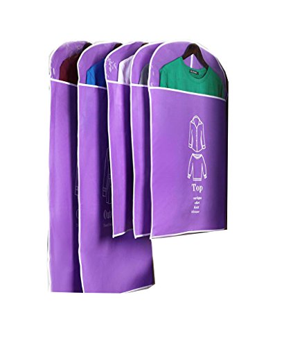 -. Title : Nonwoven Fabrics Garment Suit Clothes Covers Bags Storage Protector Wardrobe Hanging Clothing Frosted Washable Garment Suit Coat Dust Cover 5-pack