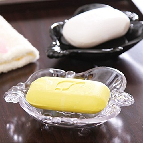 -. Feature : Made from crystal-clear, heavy-duty, break-resistant acrylic / Waterfal/Drainage Design - Self-draining levels allow water to flow out, unlike many wood or bamboo soap dish that go mouldy later on, this soap dish keeps soap bars dry and clean even between shower, which help reduce bacteria in your bathroom/ kitchen! / User Friendly - These Soap dish will not stick too tightly with your soap, and soap does not slide off.These acrylic soap savers will never get rust or moldy, can last for years. / Versatile Holders - They work great in the shower/bathroom/bathtub/counter top/kitchen and more. For soap/ keys/ glasses/dish washing sponge and more. / Color Black&Clear, perfect match your bathroom and kitchen. Package includes 2 Pieces of Soap Dishes.