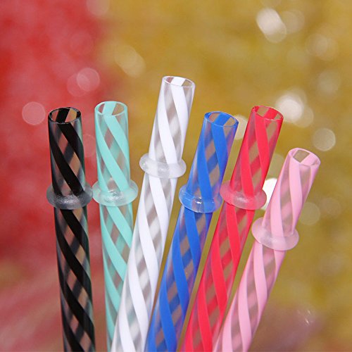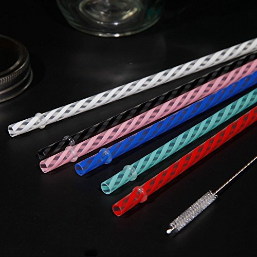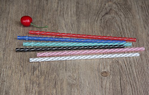 Dakoufish 11" Long Reusable Plastic Transparent Stripe Drinking Straws -12 Pack with Cleaning Brush(ADS002-11mix 6color)