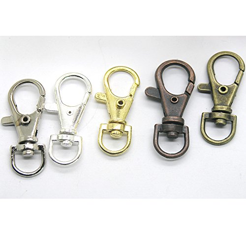 1. Item Materials: Zinc Alloy 2. Shape: Lobster Swivel Clasps 3. Color: Mixed color: Silver Tone, Gold, Nickel, Antique Brass and Antique Bronze 4. Package: Opp bag with the Kraft Bubble Mailer. 5. Quantity: 20pcs for one pack. 6. Size: Length: 3.7cm(1.5'' inch) Width: 1.6cm.(3/5'' inch) 7. Weight: it is about 120g for 20pcs 8. Attention: Normally i will send 4pcs for each color. If you want to choose the color, please leave me the message or contact me!Feature