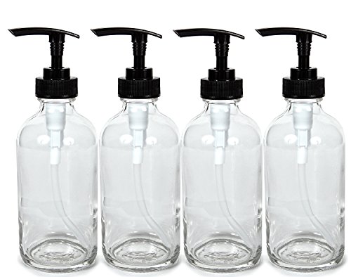 - 4 - 8 oz, Clear glass bottle's, with black Lotion Pumps.