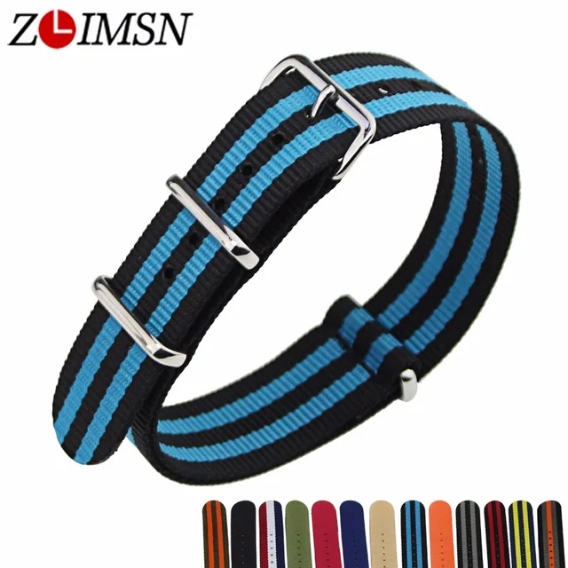 [해외] Zlimsn 5 개/몫 나토 나일론 스트랩 남성 시계 벨트 실버 블랙 시계 밴드 금속 버클 손목 시계 relojes 아저씨 2017 22 미리메터