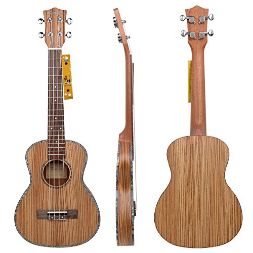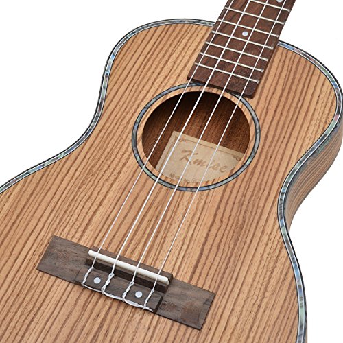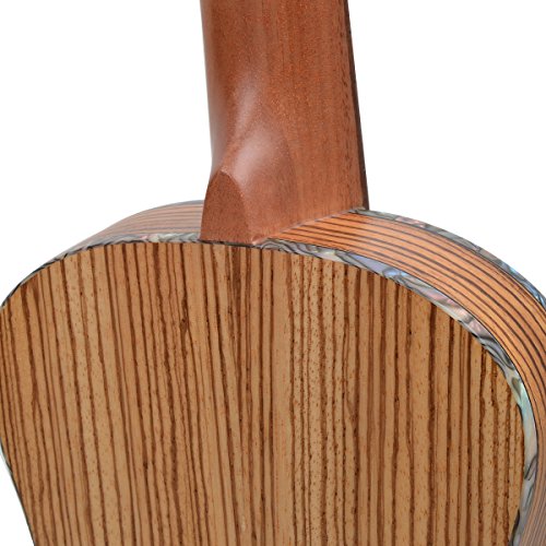 Specification: Brand:Kmise Tenor Thin Body Top:Laminated Zebra BackSide:Laminated Zebra Neck:Okoume FingerboardBridge:Rosewood Fret:18 NutSaddle:Bone Strings:Aquila made in Italy Sounhole Rosette and Binding:Abalone Machine Head:Chrome closed Finish:?matt?Natural Package include: 1x Tenor Thin Body Ukulele Hawaii Guitar 26" 1x carrying bag 1x?Joyo Tuner