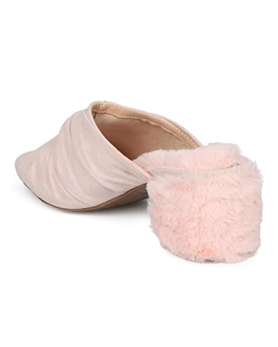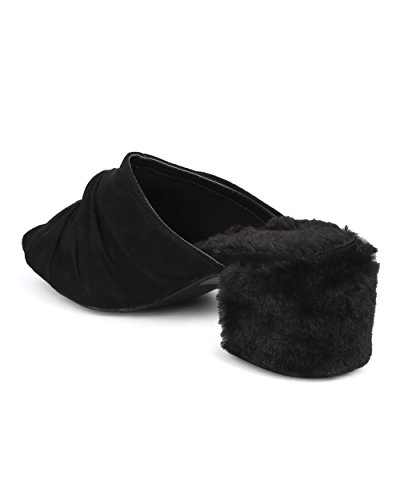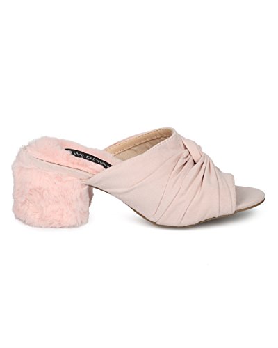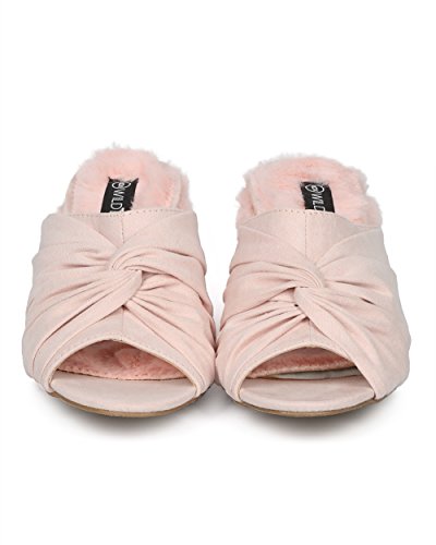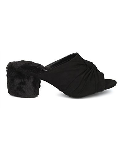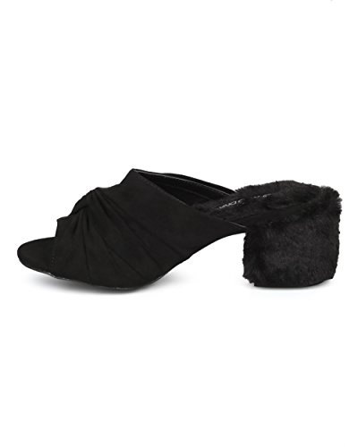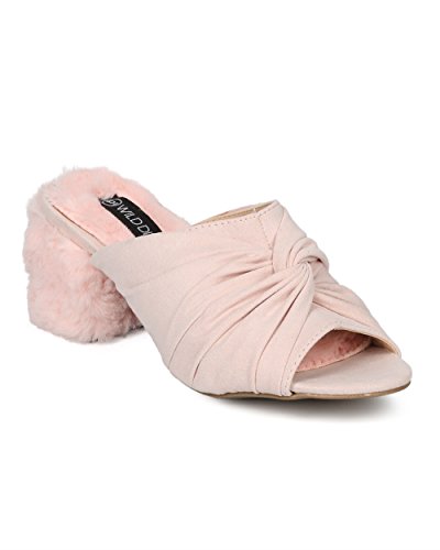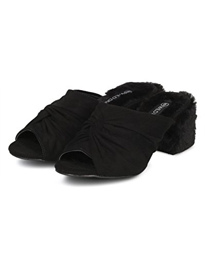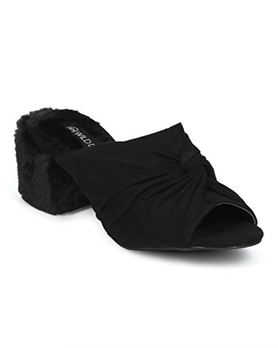 Women Fur Block Heel Mule - Peep Toe Chunky Heel - Knotted Dressy Trendy Block Heel Mule - HD03...