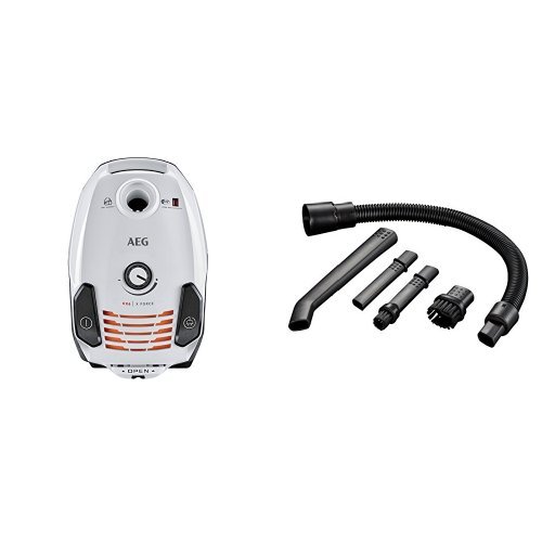 AEG VX6-1-IW-5 Staubsauger mit Beutel EEK A (700 Watt, inkl. Hartbodenduse, 9 m Aktionsradius, Softrader, 3,5 Liter Staubbeutelvolumen, 5 zusatzliche Staubbeutel, Hygiene Filter E1