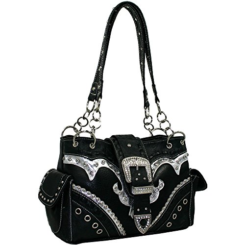 -. Brand : Way2Culture -. Department : women -. Feature : Beautiful western purse. / Made of high quality faux leather. Vintage floral lined interior. Center zippered compartments. / Interior features a back wall zip pocket & front wall multifunctional pockets. Exterior features a back zippered pocket. / Top zipped closure. Silver tone hardware. Dual shoulder strap with 9''drop length. Approx. Size: L14''x H8''x W5'' / Wallet: Made of high quality faux leather. Trifold wallet secured by magnetic snap. 2 transparent ID window. 12 credit card slots. 1 Inside zippered compartment. 3 interior flat courrency pockets. Approx Size: :7.5''x H4.5''xW -. ProductGroup : Shoes -. ProductTypeName : HANDBAG -. Title : Western Rhinestone Buckle Accent Purse Handbag With Matching Wallet
