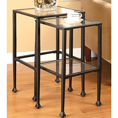 -. Brand : Generic -. Color : Black -. Feature : Set includes: 2-piece nesting table / Materials: Metal, glass / Dimensions: 24 inches high x 14 inches wide x 16 inches long -. ProductGroup : Furniture -. ProductTypeName : HOME_FURNITURE_AND_DECOR -. Title : Contemporary/Modern Style Glass and Metal (10922-37000) Black 2-piece Nesting Table Set