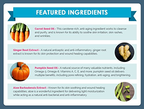- NATURAL INGREDIENTS: Aloe, carrot seed oil, and ginger SOOTHE and CLEANSE the skin.