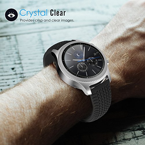 -. Feature : Premium grade Tempered Glass Screen Protector designed specifically for Samsung Gear S3 Frontier / S3 Classic Smart Watch for perfect protection on touch screen. / 9H hardness offers protection from scratch, crash, Shock-resistant of the watch, 0.33mm thickness helps maintain the original touch experience, 90% light penetration ratio preserves the original viewing quality. / Easy to clean Oleophobicity coating reduces fingerprints and oily streaks. / Advanced fitting technology makes convenience for the fitting and removal. / The Anti-bubble silicone resin layer is self-adhesive which allows for an easy dry installation. Lifetime warranty.