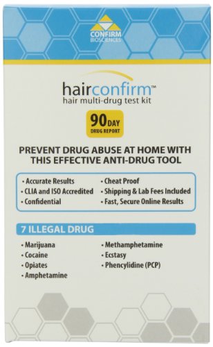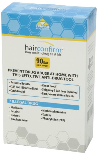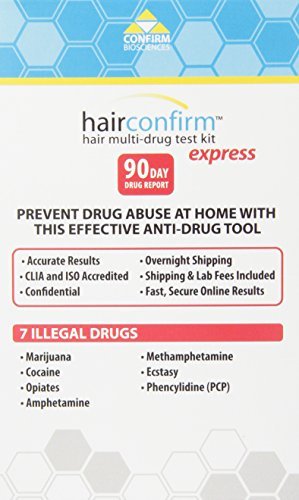 The HairConfirm Express drug test kit includes overnight shipping to ensure quick results within days of mailing the sample. This kit screens for a 90-day drug use history of Marijuana (THC), Cocaine (COC), Opiates (OPI), Amphetamine (AMP), Methamphetamine (mAMP), Ecstasy (MDMA) and Phencyclidine (PCP).