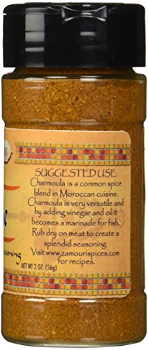 -. Binding : Misc. -. Brand : Zamouri Spices -. Feature : Exellent in Fish Tagines / Perfect for your favorite Fish dishes / Authentic Moroccan Gourmet Recipe / All Natural / No Preservatives -. Label : Zamouri Spices, an Elbertai Company -. Manufacturer : Zamouri Spices, an Elbertai Company -. PackageQuantity : 1 -. ProductGroup : Grocery -. ProductTypeName : GROCERY -. Publisher : Zamouri Spices, an Elbertai Company -. Size : 1.7 oz Glass Jar -. Studio : Zamouri Spices, an Elbertai Company -. Title : Chermoula - Moroccan Fish Marinade 2.0 oz - Zamouri Spices