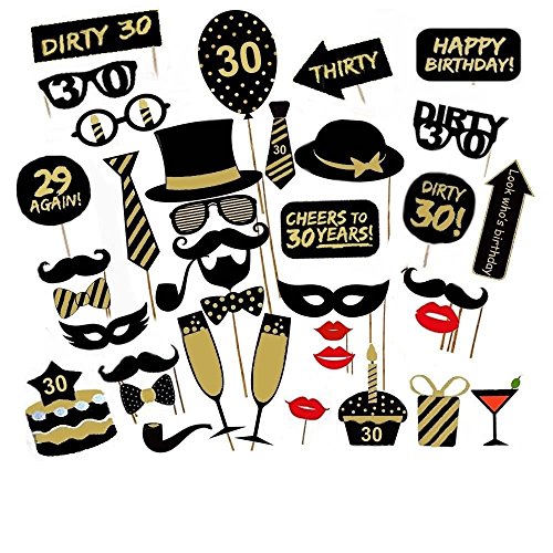 36PCS 30th Thirtieth Year Birthday Party Supplies Masks Favor Photo Booth Props by Yangguang