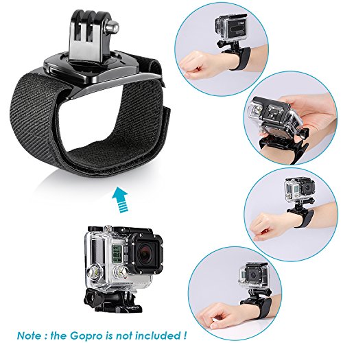 Application 1: Surfing Holder + Surface J-hook + Long Screw: The surfing holder has a bodyboard mount, a short base screw and a long base screw. It can be screwed in the bodyboards, soft-tops or foam surfboards (1.5-3¡± / 4-8cm thick). You can adjust the angle of your Gopro with a surface J-hook to catch the perfect shoot while surfing.^Application 2: Floating Grip Mount + Long Screw Bolt. Floating holder is designed to keep your camera (should be with a waterproof shell, not included) easy to float on the water.^Application 3: Wrist Mount + Long Screw Bolt. Free your hands while bicycling, climbing skiing and surfing. Secures your Gopro flat against your wrist for hands-free convenience.^Application 4: Head Strap + Long Screw Bolt. The adjustable head strap is compatible with all sizes Gopro Hero 4 3+ 3 2 1 Cameras. It allows you to use the Gopro camera on your head or a helmet to record those before you when skiing, riding .etc.^Application 5: Floaty Backdoor + Adhensive + Anti-fog Inserts. Whether you take your camera into the ocean or pool, or it falls in by accident, the floaty backdoor will keep your camera floating on the surface. Use the anti-fog inserts to absorb the water vapor in the waterproof case.[ 1