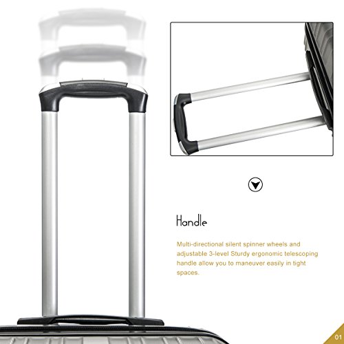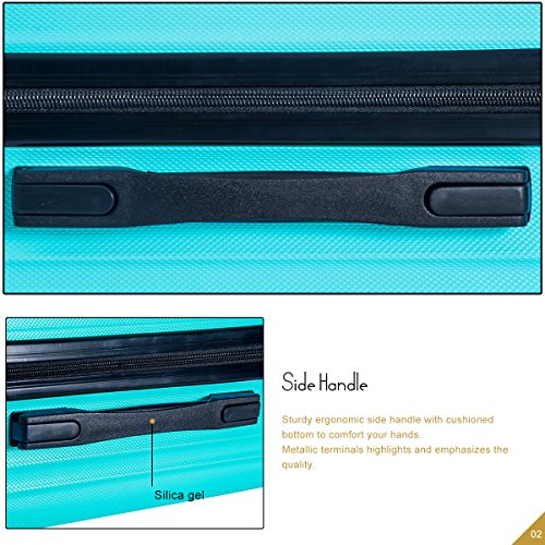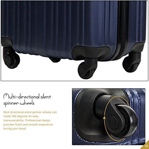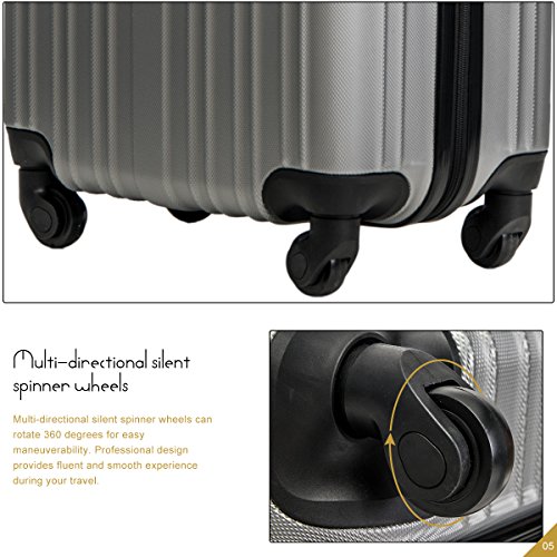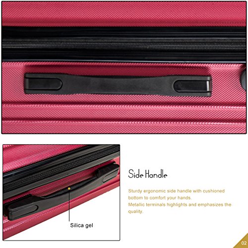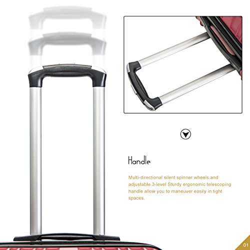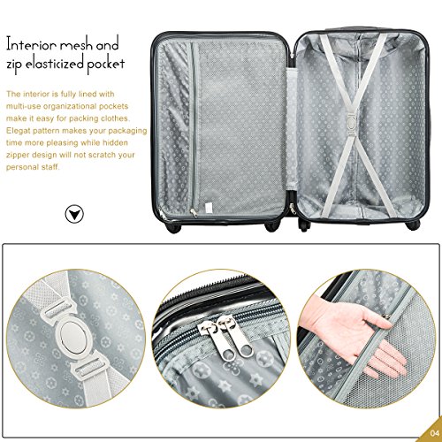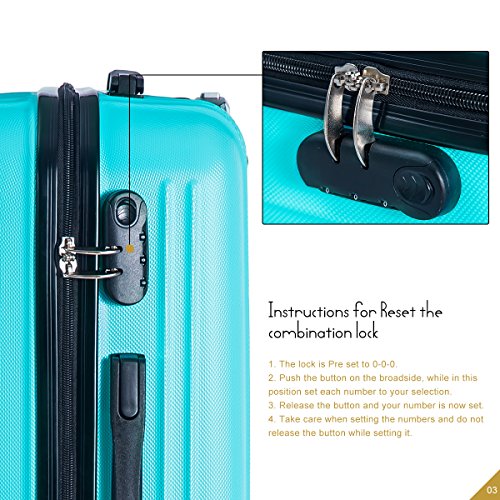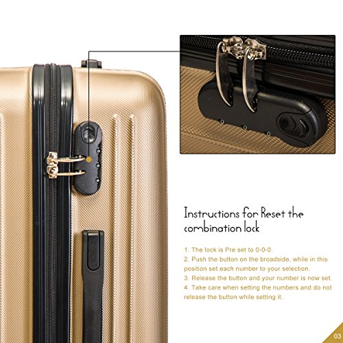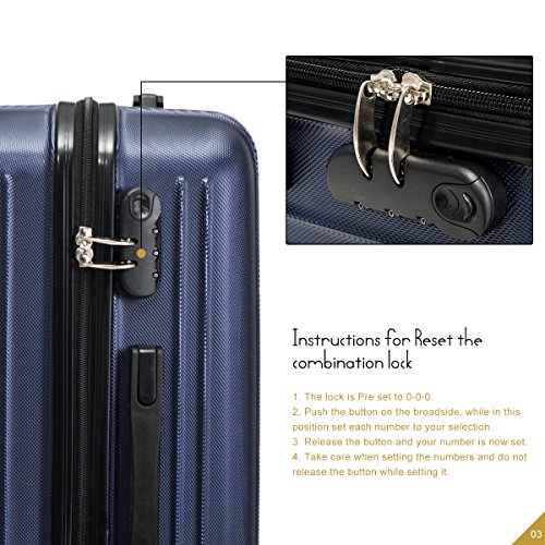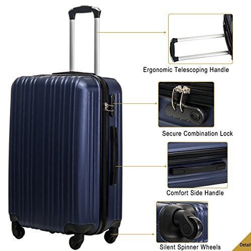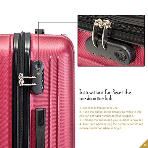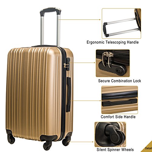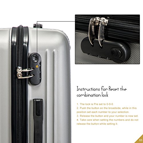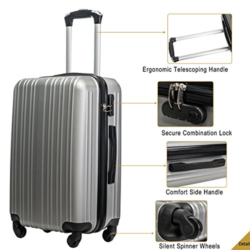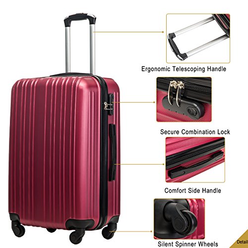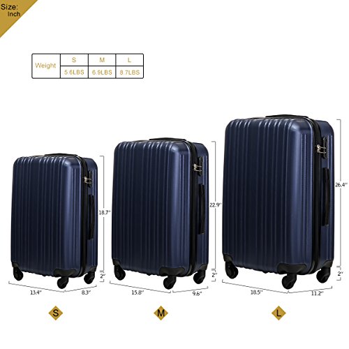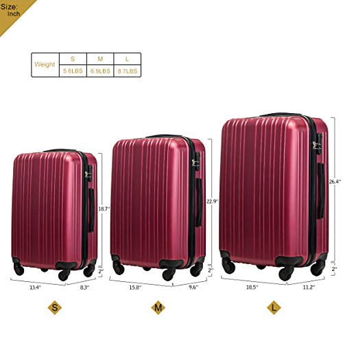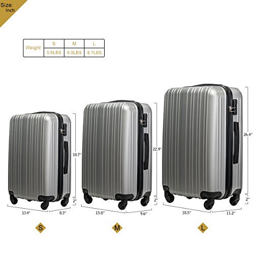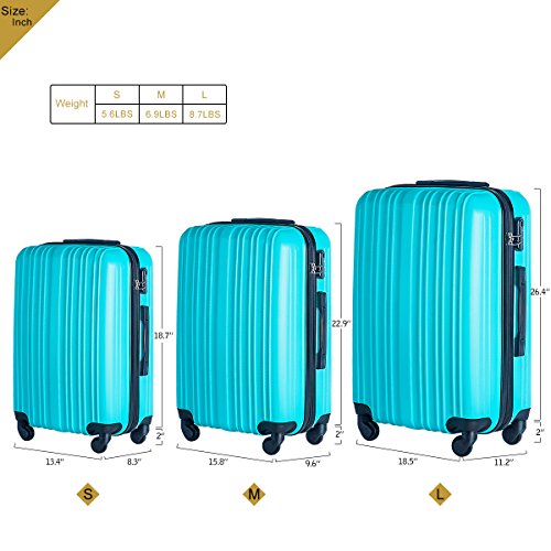Product Description This Merax luggage set are esigned to provide travelers comfort, functionality, reliability, and peace of mind, this 3 piece suitcase set features one 28inch suitcase, one 24inch suitcase for checking in and one 20inch suitcase suitable for carrying onto the plane. With Lightweight durable ABS hard shell material, it makes the luggage durable, flexible and absorbs impact when under stress. Quiet airplane spinner wheel system and an adjustable 3-step telescoping handle system allow you to maneuver in tight spaces and provide effortless movement. This luggage allows you to pack more while avoiding the excess weight surcharges imposed by most airlines. An elegant pattern hides any potential scratches or scuffs from your journeys. With the 3-digit combination lock you secure the contents from thieves. Features Approx. Dimension (without wheels): 20inch 18.7 x 13.4 x 8.3 inch , 24inch 22.9 x15.8 x 9.6 inch , 28inch 26.4 x 18.5 x 11.2 inch Approx. Dimension (including wheels): 20inch 20.7 x 13.4 x 8.3 inch , 24inch 24.9 x15.8 x 9.6 inch , 28inch 28.4 x 18.5 x 11.2 inch Approx. Weight: 20inch 5.6 lbs; 24inch 6.9 lbs; 28inch 8.7 lbs