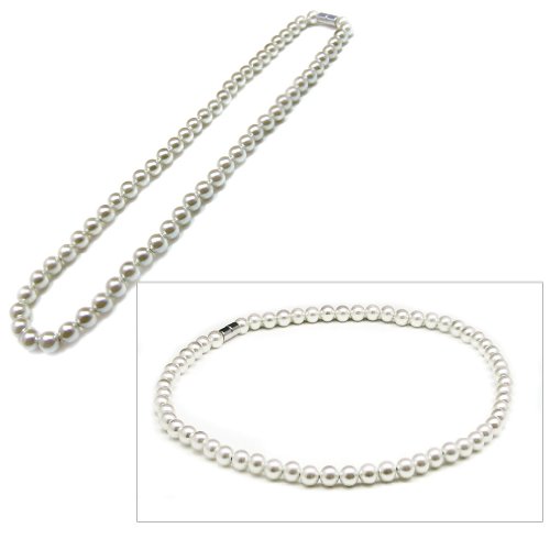 Accents Kingdom ® introduces an amazing magnetic hematite necklace. Are these real pearl beads? They are magnets! Each pearl (8mm) charged up to 600-700 gauss magnetic strength with a strong magnetic enclosure which holds this fabulous piece in style, very interesting piece to wear and show. It measure 20" long and 1/3" wide. It makes a great gifts for any occasions.Feature