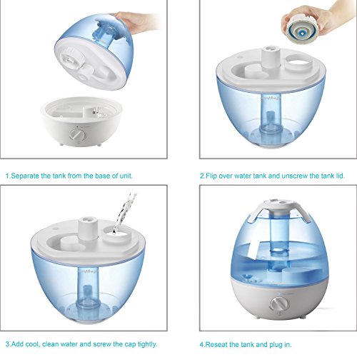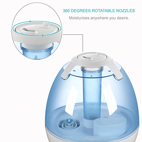 Studio : Anyproo Publisher : Anyproo Binding : Kitchen Product Description COOL MIST HUMIDIFIER Allow Anypro to keep the air moisturized with our 3.5L cool mist humidifier. This compact and powerful humidifier is applied with smart features that provides perfect coverage in dry areas of your home and office, which effectively humidify the air in rooms up to 538 sq ft (50m²) From ANYPRO, A Customer Orientated Enterprise ? 99% positive feedback for customer service ? This product is backed with 365 days warranty so your satisfactory is guaranteed. Smart Humidification Technology Ultrasonic humidifier typically runs 20 to 36 hours of continuous operation (depending on mist control setting) Adjustable Humidity Control Adjust vapor output to level you want with the dial knob control. Humidify anywhere you desire with the 360 degrees adjustable mist spray. Leakage Crush Resistance The deep groove base design is featured in preventing easy leakage which is also tested for crushing resistance Antibacterial Material Antibacterial material is used inside water tank and the base to suppress mold growth. Good tap water or distilled water works perfect for better anti-mold effect. Variable Night Lights Choose light from 6 soft colors to enhance your mood: red, purple, blue, green, yellow , pink. For Optimal Use: ? Distilled water or good tap water works perfect for anti-mold effect. We recommend cleaning once a week for better maintenance ? Please don't add any kind of oils into the water tank or base to prevent crack or leakage. 0