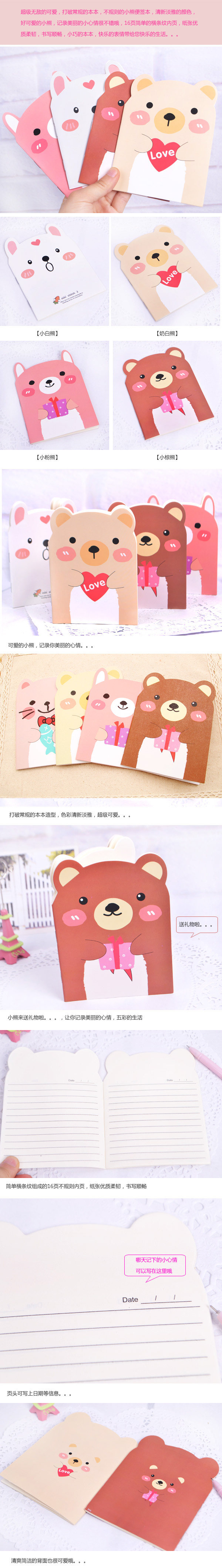 韩国创意文具可爱小熊笔记本卡通记事本随身日记本学生小本子批发