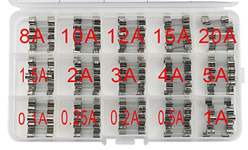 - Those glass fuses are packaged in a clear plastic box for keeping different Ampere values separated and easy to access