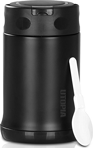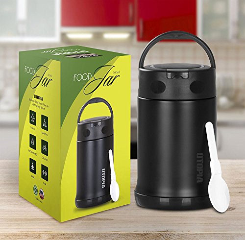 Stainless Steel Travel Food Jar With Folding Spoon - 16.9 Ounce Capacity - Heat Insulation Effect - by Utopia Home