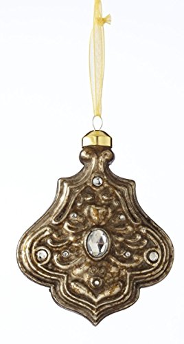 PAIR! Christmas Glass Jeweled Emblem Ornament in YOUR CHOICE OF GOLD & BLACK or NICKEL SILVER FINISH (silver)