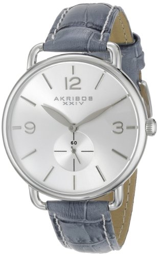-. Title : Akribos XXIV Women's AK658GY Essential Stainless Steel Watch with Grey Leather Strap