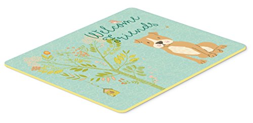 Caroline's Treasures BB7624CMT Welcome Friends Brown Staffie Kitchen Mat, 20" x 30", Multicolor