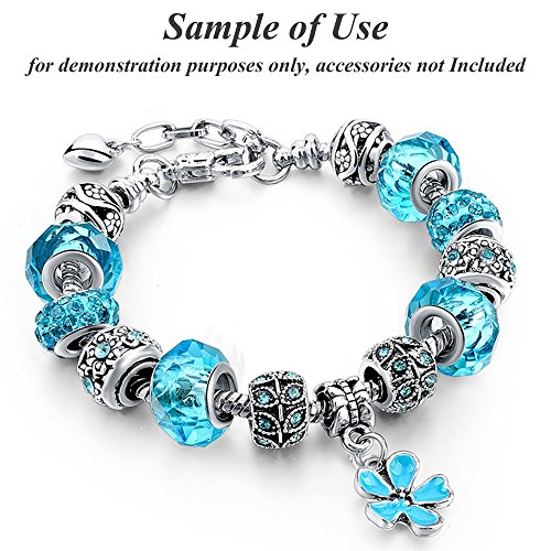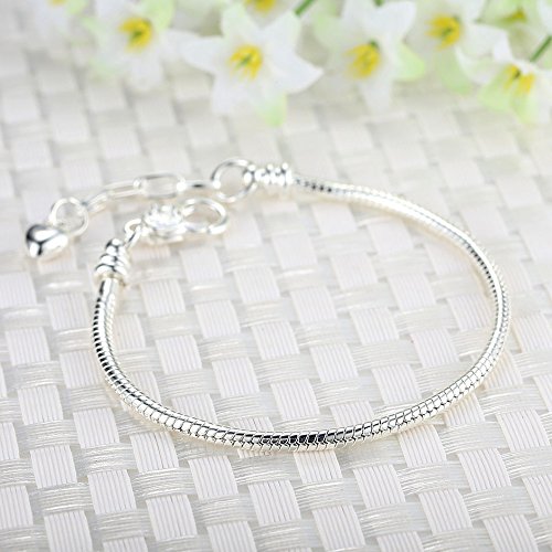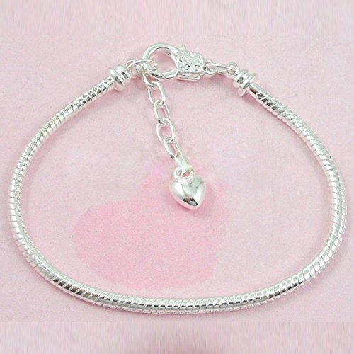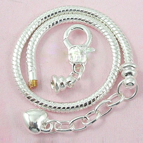 RUBYCA 5pcs White Silver Plated Heart Lobster European Snake Chain Bracelets fit Charm Beads 7.5"
