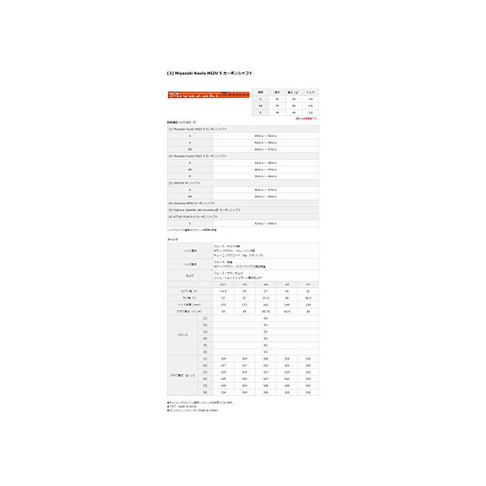 원본상품명: DUNLOP(ダンロップ) フェアウェイウッド SRIXON Z F65 フェアウェイウッド Miyazaki Kaula MIZU5 カボンシャフト