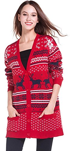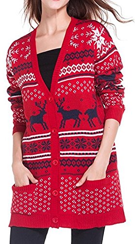 Womens Oversized Christmas Reindeer Cardigan (Large, Red2 Reindeer Cardigan)
